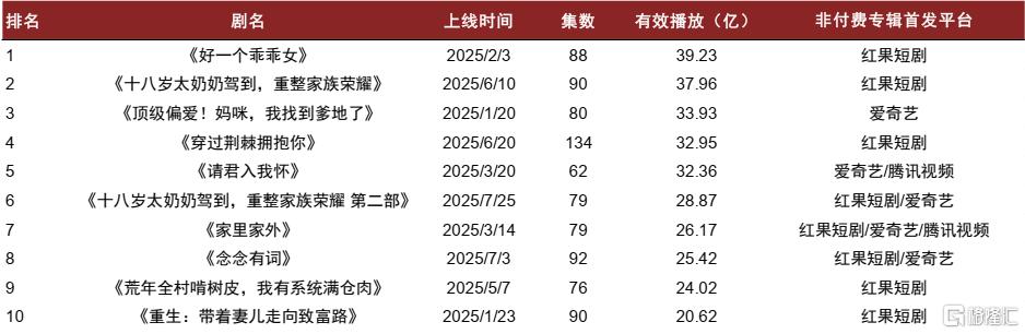 图表18:微剧全网有效播放量排名(2025年截至9月),Top 10中免费首发平台红果短剧占8成