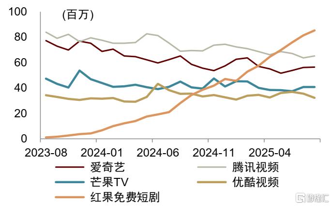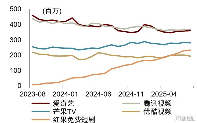 红果短剧的崛起离不开字节系流量的支持。以抖音为例,在导流机制上,抖音通过在其平台内植入红果短剧的精彩片段或“名场面”,并设置“免费看全集”的弹窗引导,点进去便可一键直达。对于不愿额外下载APP的用户,抖音内还提供“短剧小程序”无缝衔接红果,形成了一套高效的转化路径。根据QuestMobile,2025年8月红果短剧与抖音的活跃用户重合度高达87.81%。此外,字节的算法优势使得红果短剧的用户标签足够精准,能够提高转化效率、增强用户粘性。字节系的流量主战场是抖音,但短视频赛道作为主流的娱乐内容平台,其所能外溢出的用户娱乐内容需求量级亦是惊人的——如汽水音乐、番茄小说、红果短剧等,不排除后续还有进一步足够颠覆垂直赛道的产品创新出现。