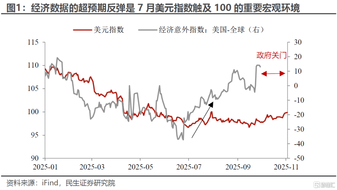 我们倾向于本轮美元指数的突破相对7月会更“成功”——反弹的点位可能会更高(101至103),持续的时间会更长,至少需要美国政府开门后,连续偏弱的经济硬数据来修正市场的预期。