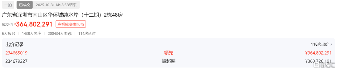 不仅总价刷新了深圳的法拍房成交价历史记录,也超越了2021年9月上海银柳路别墅(即华洲君庭)创下的3.15亿元全国成交总价纪录。