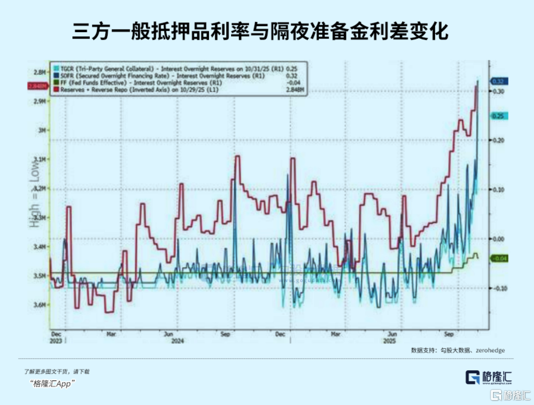 不仅仅是SOFR在飙升,三方一般抵押品利率利差也飙升了25个基点,创下新冠疫情以来的最高水平。