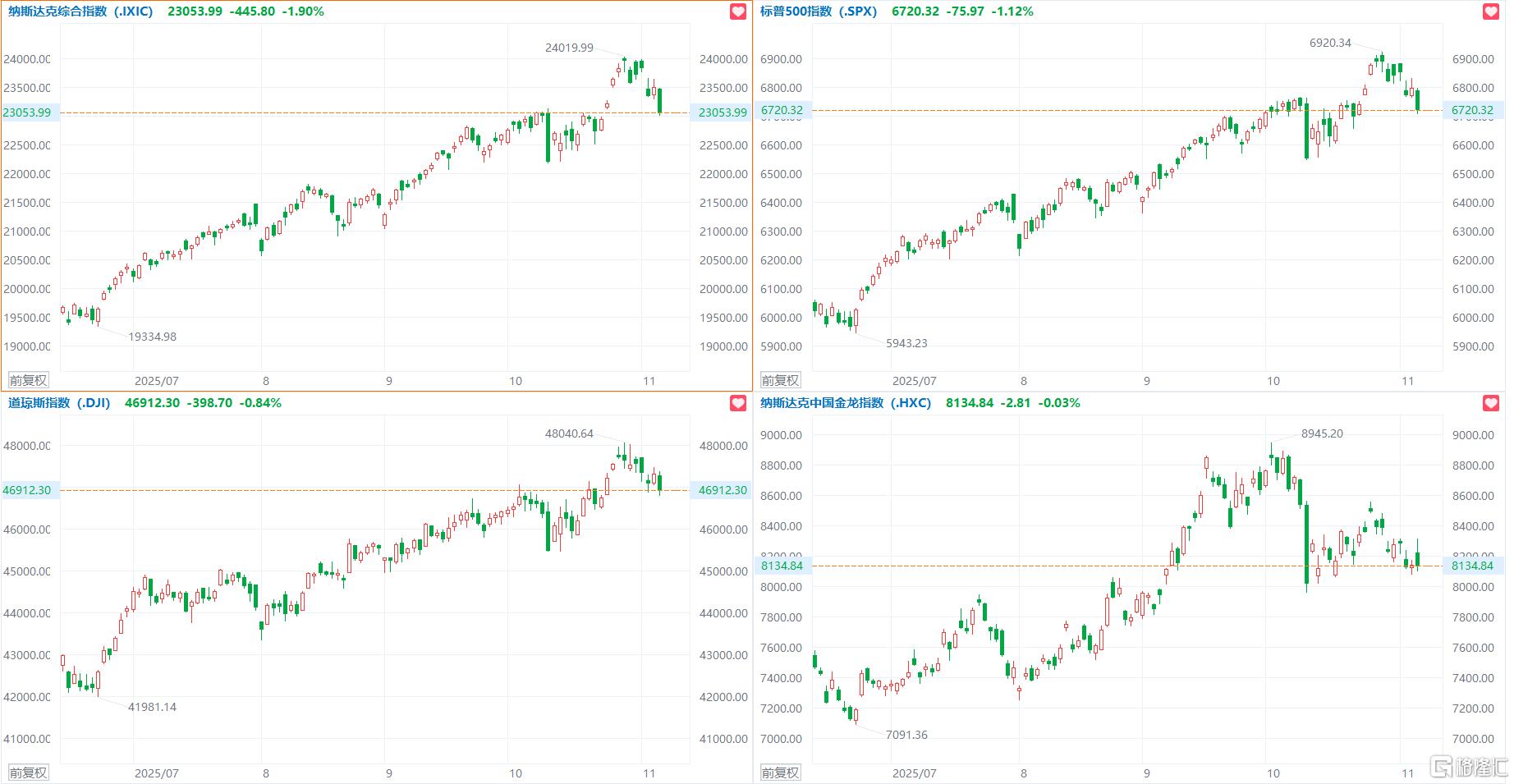 1、纳指、标普500指数收跌逾1%,英伟达、特斯拉跌超3%;