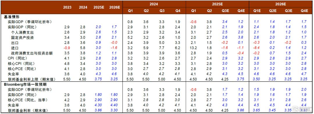 我们预测美国2026年实际GDP增速为1.7%。上半年受关税与移民政策拖累,增长仍面临下行压力,主要风险来自“类滞胀”。下半年在财政与货币托底的共同作用下,经济活动有望改善。核心PCE通胀率全年大致维持在3%左右。