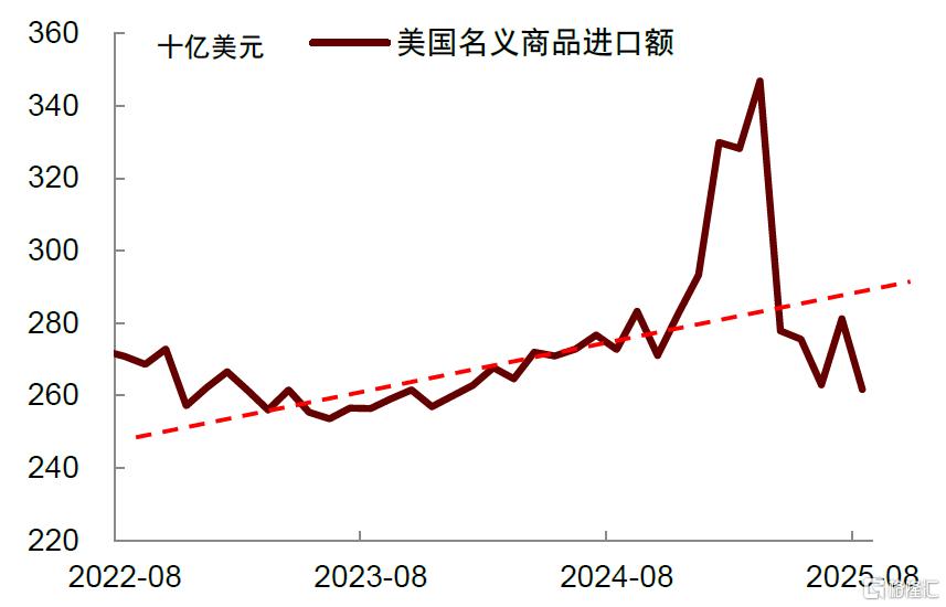 截至目前,特朗普政府宣布的法定关税税率已上升至20%,有效税率则从去年的2.4%上升至11.5%(图表1)。有效税率更低是因为关税收入具有滞后性——企业往往会在关税生效前提前采购,以规避更高税负;进口商还可通过“定期月度报表计划”延迟六周缴纳关税。这种滞后效应使得关税对经济的冲击未如预期般迅速显现,但也意味着其影响将在2026年持续释放。尤其在进口环节,届时企业将失去提前备货的空间,只能在更高成本下继续采购,或被迫削减进口需求。这将进一步压缩高效供给,放大关税对经济运行的拖累。