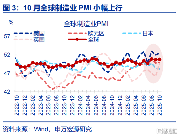 展望未来,伴随中美贸易形势缓和,供给扰动消退,以及我国份额提升等影响,预计11月出口增速可能会有恢复。本月对发达经济体出口出现分化,对美出口表现好于欧英,可能体现美国补库仍对进口形成拉动。同时中美关税进一步缓和,后续对美出口或仍有空间。此外,新兴国家工业化、城镇化提速带来增量的生产资料进口需求,以及我国在新兴市场份额持续提升等逻辑,我国中间品、资本品出口仍有韧性,预计11月出口可能会有恢复。