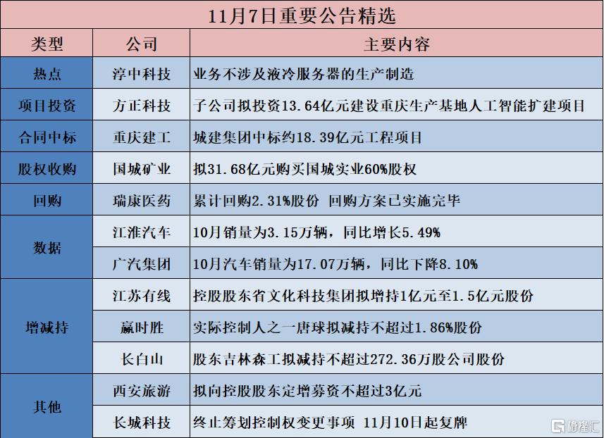 公告精选︱华电能源:拟投资120.43亿元富发电厂2×66万千瓦“上大压小”热电联产机组与新能源一体化联营项目;淳中科技:业务不涉及液冷服务器的生产制造