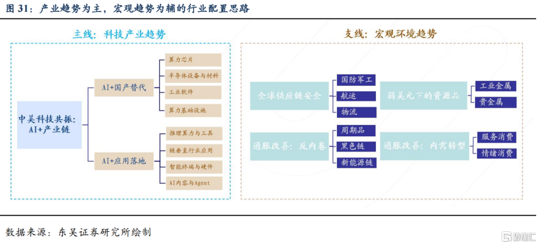 大宗商品:“绿通胀”遇上“反内卷”。铜、铝等受益于 AI 算力、新能源的有色金属需求增量明确,供给紧缺格局下,价格上涨具备长期性和确定性,是多头配置核心标的。