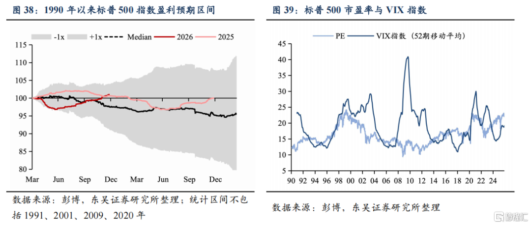 展望看,我们认为2026年美股将受益于宏观环境与AI产业叙事的多重利好,延续新高。从盈利预期来看,25Q3以来市场对2025、2026年标普500盈利预期已持续上修、偏离季节性低迷;但与此同时,从估值视角来看,当前已处于高位的估值水平与美股对AI泡沫叙事较强的依赖度意味着,未来估值的进一步向上易带动波动率同步走高,加大交易的难度。