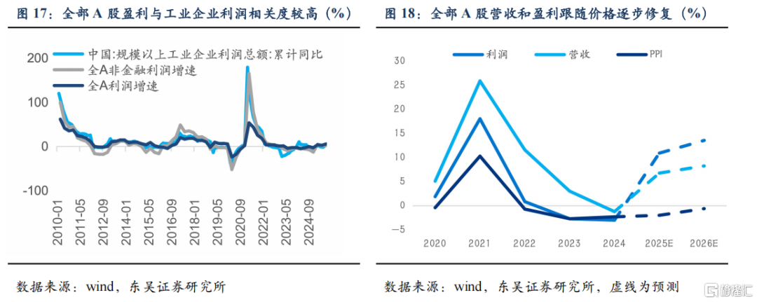 盈利来看,A股整体盈利和工业企业利润与PPI基本同向变化。2025年下半年,“反内卷”预期引导PPI低位回升,随着PPI降幅边际改善,今年8-9月工业企业利润出现回暖迹象,企业盈利周期拐点出现,2025年全年盈利已呈现修复态势。如果2026年“反内卷”政策进一步深化与落地,供给层面的边际变化有望带动PPI进一步上行,尽管具体幅度取决于“反内卷”和内需政策合力度,但PPI上行仍能驱动上游和中游行业涨价,如果内需政策效果进一步显现,价格全面回升,盈利有望进一步向下游传导。2026年全年,A股盈利增速有望再上一个台阶,对应各宽基指数的EPS均有望出现较大幅度的提升。