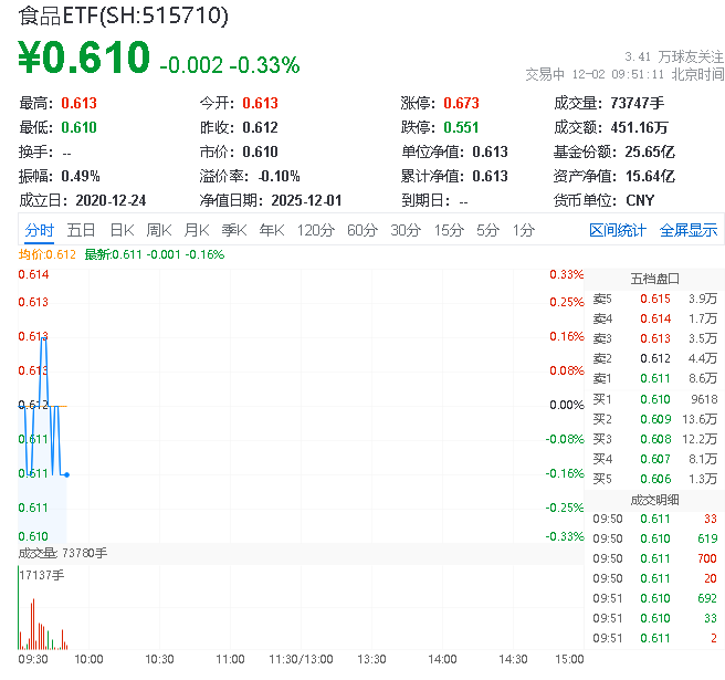 一键配置吃喝板块核心资产,重点关注食品ETF(515710)。根据中证指数公司统计,食品ETF(515710)跟踪中证细分食品饮料产业主题指数,超6成仓位布局高端、次高端白酒龙头股,近4成仓位兼顾饮料乳品、调味、啤酒等细分板块龙头股,前十权重股包括“茅五泸汾洋”、伊利股份、海天味业、青岛啤酒等。