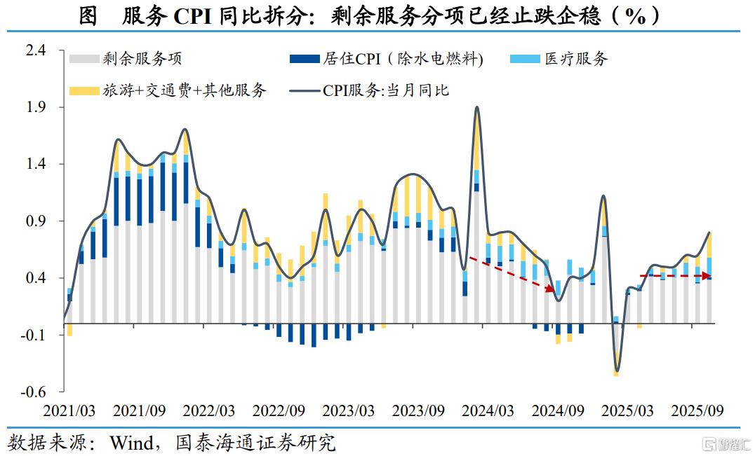 此外,10月CPI的大幅改善还叠加了两大短期因素:一是食品与能源价格的阶段性修复,降幅显著收窄;二是假期错位带来的季节性脉冲,国庆与中秋叠加推动旅游及住宿价格明显反弹。这意味着10月数据中季节性因素占比较高,随着扰动消退,后续核心CPI同比或有所回落。