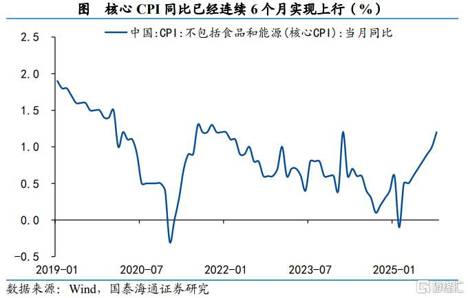 10月CPI同比由负转正,更值得关注的,是剔除掉食品和能源价格后,核心CPI同比已经连续6个月回升,从4月的0.5%升至10月的1.2%。要知道,自2022年以来我国核心CPI长期徘徊在1%以下,本轮持续上行并重新突破1%区间是一个重要的信号。