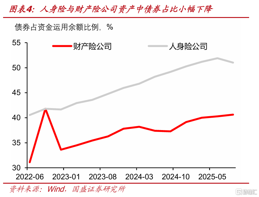 超长债显著走弱能够找到诸多解释。首先,银行等配置型机构对长债的承接能力受到指标约束,特别是△EVE和一级资本比例接近监管要求的15%红线,导致银行无法承接长久期的债券,甚至可能会为了满足指标要求抛售长久期债券,另外,银行通过抛售长久期债券兑现浮盈也一定程度上会引发长债调整;其次,公募基金费率改革可能会阶段性的带来公募赎回压力上升,在市场下跌行情中,净值回撤在年末可能会进一步加剧公募的被动赎回压力,导致公募、券商等交易性机构进一步减持长债;再次,保险等机构负债端增速近两个月有所放缓,且配置力量更多向股票倾斜。9、10月保险保费收入增速为负,部分受前期保费冲量透支影响,另外,资产配置中债券占比略有降低,而股票占比明显提升。