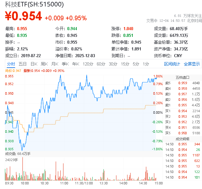 一键布局科技领域龙头赛道,建议关注科技ETF(交易代码:515000,联接A:007873,联接C:007874)。资料显示,科技ETF(515000)跟踪中证科技龙头指数,该指数从沪深市场的电子、计算机、通信、生物科技等科技领域中选取规模大、市占率高、成长能力强、研发投入高的50只上市公司,集中代表A股科技核心资产。风险收益特征相较其它单一科技赛道品种更加均衡。
