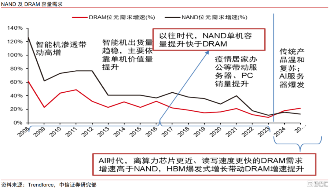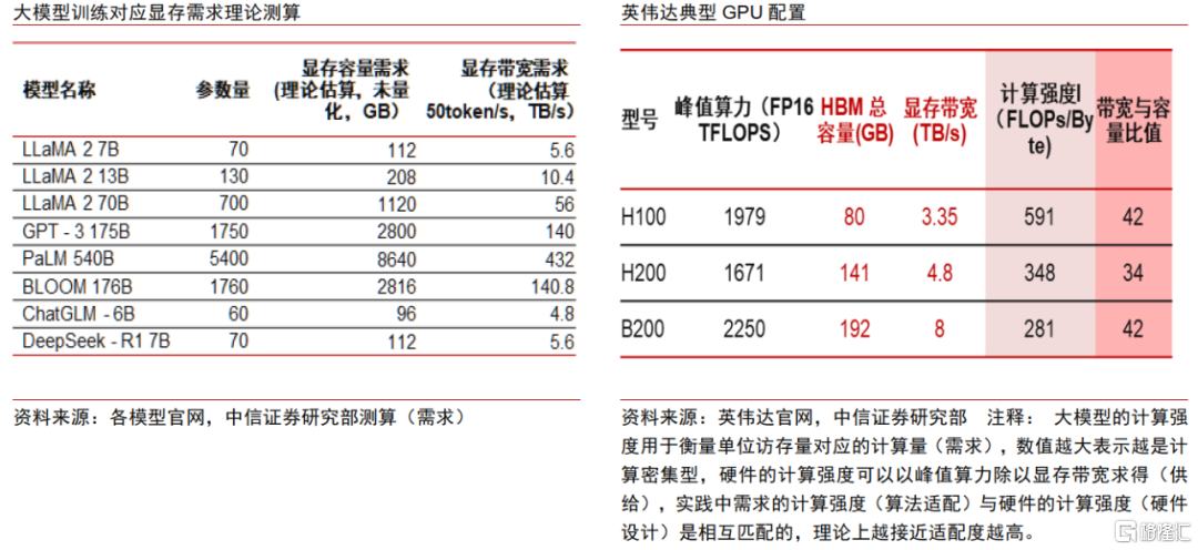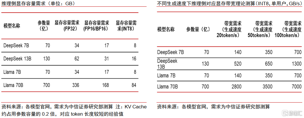 ▍不同场景的显存升级侧重:训练侧容量带宽需求全面提升,推理侧带宽需求突出。