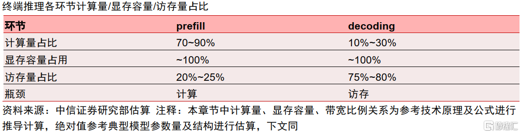 1)终端推理:访存密集型,升级核心是显存带宽(=生成速度×模型大小),当前百tokens每秒生成速度下,带宽需求达到TB/s级,普通DDR5/LPDDR5带宽差距约10倍;显存容量需求较低,约为模型参数容量的1.2倍;低功耗要求很高。产品选择上,目前行业的新产品正处探索阶段,趋势为先进封装赋能产品走向小型化与定制化;中长期存储大厂或推出带宽优化的标准品。
