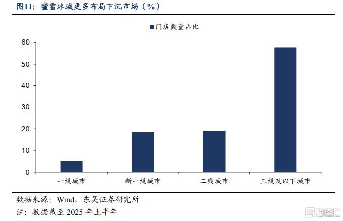 蜜雪冰城的品牌策略则是准确契合K型分化下行线的群体,其在消费过程中更在乎商品的价格,追求极致的性价比,追求通过最低的支出获得较好的消费体验。与喜茶、奈雪的茶等品牌追求高端路线所不同,蜜雪冰城以低价和雪王IP为突破点,为消费者提供极致性价比商品的同时亦为消费者提供情绪价值。一方面,蜜雪冰城凭借其在供应链方面的优势采取低价策略,同款商品定价远低于行业均价,为消费者提供极具性价比的商品,同时其门店布局广泛,截至2025年上半年其在国内已有近5万家门店,其中三线及以下城市占比达57.6%,充分满足了下沉市场消费者对平价饮品的需求;另一方面,蜜雪冰城凭借雪王IP的在社交媒体出圈,魔性的主题曲以及雪王线下互动给消费者平添了轻松愉悦的消费体验。此外,蜜雪冰城在售卖产品的同时鼓励用户参与其内容创作,如消费小票上引有自创小说并留有开放式提问、如雪王表情包和恶搞视频在短视频平台的传播,都让用户成为了品牌故事的共创者,使蜜雪冰城成为年轻人的“情绪陪伴者”,在高性价比的产品下又提供了极大的情绪价值。