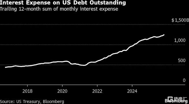 花旗集团利率策略师杰森·威廉姆斯指出:「最大的挑战是利息支出。即便关税收入达到3000-4000亿美元,仍远低于我们为现有债务支付的利息。我们就像陷入流沙,关税或许让我们下沉得慢一点,但仍在下沉。」