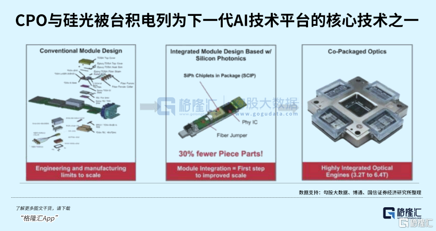CPO(共封装光学)使得集成架构成为可能。这种架构转变既提升了性能,也改善了经济性,尤其在大规模AI计算集群中,互连功耗的降低可带来显著的运营成本节约。