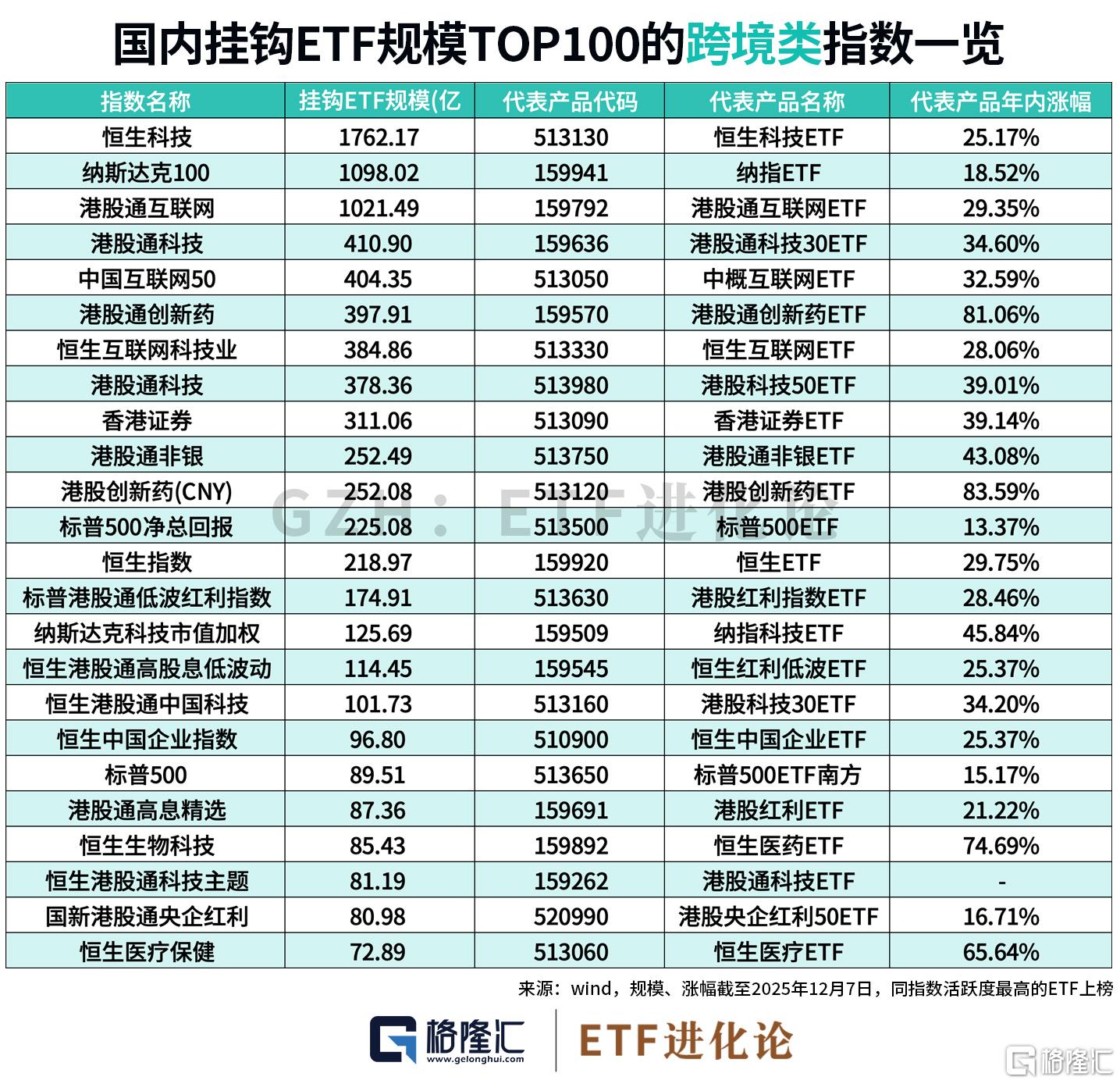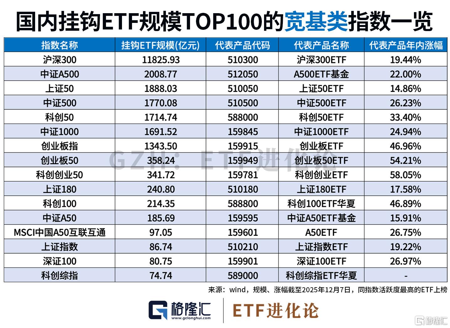 今天梳理国内挂钩ETF规模TOP100的指数及代表产品,并整理出最具市场影响力的百亿级ETF全名单。
