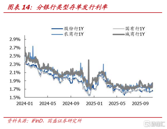 存单收益率小幅上行。本周3M收益率上行4.00bp收于1.62%,6M收益率上行2.00bp收于1.64%,1Y收益率上行1.50bp收于1.66%。本周1年存单与R007利差扩大4.09bp至15.87bp。