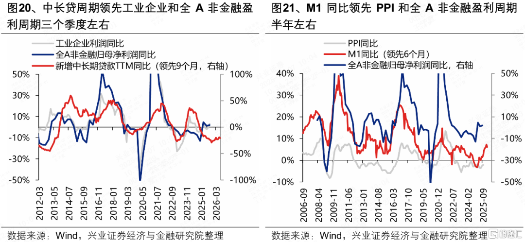 多项盈利的先行指标已释放积极信号。新增中长期贷款、M1同比等宏观领先指标的走势也给出了积极的信号。明年随着反内卷政策推进,叠加需求端改善,价格因素有望带动企业利润显著回暖。