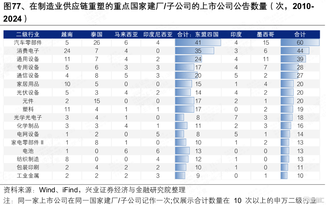二是产能布局趋于分散化。出于降低成本、分散风险的目的,汽车零部件、机械、化工等品类在海外产能布局相对充分。