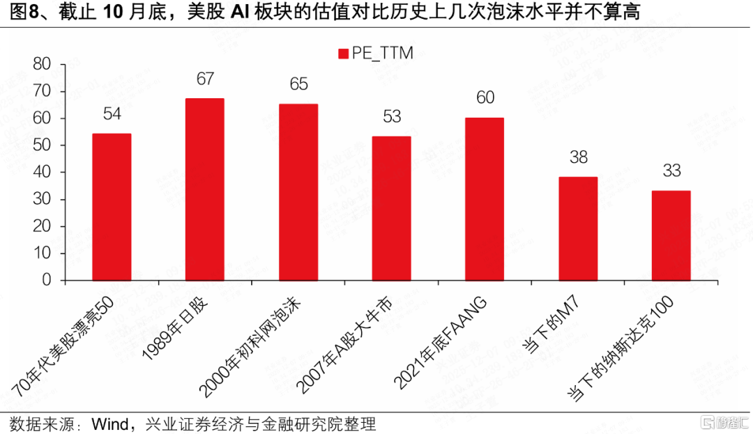 但综合估值、龙头企业财报和投资占比等指标的历史横向对比来看,兴业证券认为当前美股AI尚未显著泡沫化。