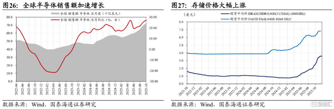 新兴科技是主线,聚焦景气的科技制造与AI应用。当前全球科技主线面临AI叙事分歧与交易拥挤度的担忧。然而,科技领域作为大国竞争的前沿,预计将继续担当本轮经济复苏的核心驱动力,并且后续有望迎来更为密集的利好催化。与美国相比,中国当前的资本开支周期仍处于早期阶段,预示着未来具备广阔的增长空间。从景气的边际变化观察,当前的焦点主要集中在科技制造领域的供需紧张局面,以及AI应用技术的快速迭代。本轮英伟达回调更多源于其垄断地位的松动,而非AI叙事的泡沫破裂。谷歌自研的TPU(Tensor Processing Unit)与英伟达主导的GPU(Graphics Processing Unit)技术路线长期处于竞争关系。谷歌TPU采用专用架构设计,针对深度学习矩阵运算进行深度优化,通过减少缓存层级和简化控制逻辑,实现每瓦特算力的极致提升。其核心优势在于处理大规模并行计算任务时,能以更低功耗完成训练与推理。相比之下,英伟达GPU基于通用计算架构,通过CUDA生态支持从图形渲染到科学计算的广泛场景,其Tensor Core虽专为AI优化,但仍需兼顾通用性需求。尽管英伟达当下占据AI算力市场的核心地位,但谷歌发布的基于自研TPU芯片的Gemini 3模型表现亮眼,并开始向Meta等英伟达大客户推销TPU,使得市场对英伟达能否维持垄断地位产生动摇。我们认为,技术竞争有利于产品创新与迭代,利好AI算力成本下降,同时更加利好全球范围内对AI基础设施的投资持续拉动电子半导体行业和电力设施的需求,存储器价格也保持上涨趋势。与此同时,全球AI应用生态正加速演进,例如阿里巴巴也启动了其开源模型千问App的公测,旨在打造个人AI助手。港股方面,近期互联网科技龙头密集发布三季报,在业绩保持韧性的同时,AI领域的投入也在持续增长,且龙头企业多数在业绩会中指出AI赋能与商业化加速的现象。我们认为,港股科技龙头当前已进入击球区,后续美联储降息路径的重新明确将是加大布局的重要信号。