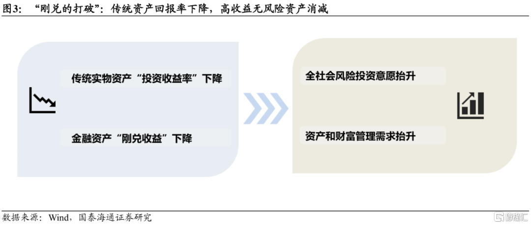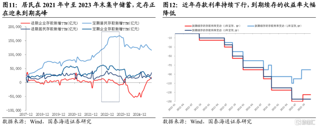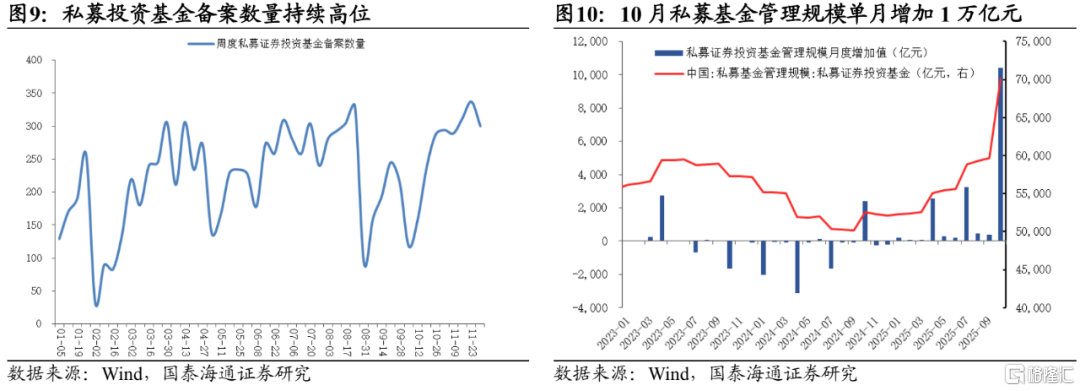 ▶无风险收益下沉:2025年只是开始,2026年是固收走向固收+的大年。如果“刚兑”存在,则资产管理需求会很小;但如今,中国社会正在出现两个“刚兑”意识的打破,传统地产基建相关的经营预期下降,进而固定资产投资意愿降低;其次,高收益、无风险的金融资产消减,由于债券价格调整以及票息不足,纯固定收益产品大幅走低。由此,传统固定资产投资下降+高收益无风险金融资产消减,中国社会资产管理需求将进入井喷期,2025年只是开始,2026年是从固收走向固收+的大年:1)2026年是3年期存单到期的高峰年,存单收益仅1.5-1.7%已远低于2023年3.5-4.0%,社会资本再配置和多元配置需求较大;2)未上市保险公司将在2026年执行新会计准则,可通过OCI账户买股票;考虑近期金融监管总局进一步下调权益风险因子,我们预计2026年保险入市增量有望达到万亿。考虑海外结汇增量,2026年入市空间将进一步打开。
