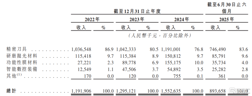 此外,2024年,公司来自研磨抛光材料、功能性膜材料、智能数控装备的收入占比分别为9.7%、10%、3.5%。