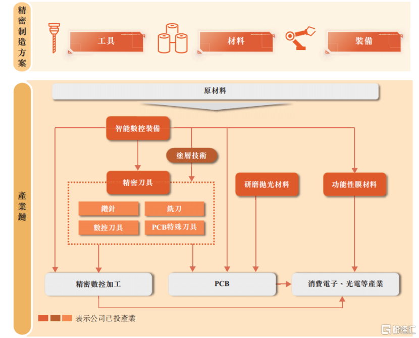凭借此组合,公司可以为PCB、精密数控零部件、消费电子及光电产业等领域的生产商提供综合的解决方案。