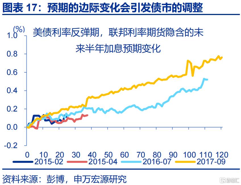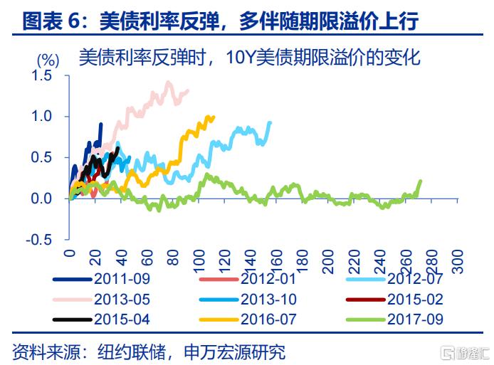 7 2013年5月-9月、10月-12月的反弹,主因TAPER的预期升温,2013年5月美联储首次释放缩减量化宽松(QE)的信号,引发“缩减恐慌”(Taper Tantrum),美联储正式宣布启动Taper,将每月购债规模从850亿美元减少至750亿美元,按比例缩减国债和MBS的购买量。