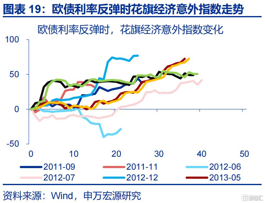 宏观基本面预期的逆转,通常是打破市场一致预期、导致债市步入高波动的直接诱因。历史回溯来看,低利率时代的债市出现高波动并不以实际的货币政策趋紧为前提,反而多数仍发生在降息的背景下;“降息不及预期”或“加息预期小幅升温”即可能触发债市的快速调整,如2013年5月美国的缩减恐慌7、1998年日本的运用部冲击8等。而政策预期的变化往往由基本面改善驱动,经验显示,名义GDP的修复9均是债市高波动的重要诱因。以欧元区为例,除2012年6月-7月外、欧元区其他的利率大幅反弹均发生在花旗欧洲经济意外指数走高的背景下。