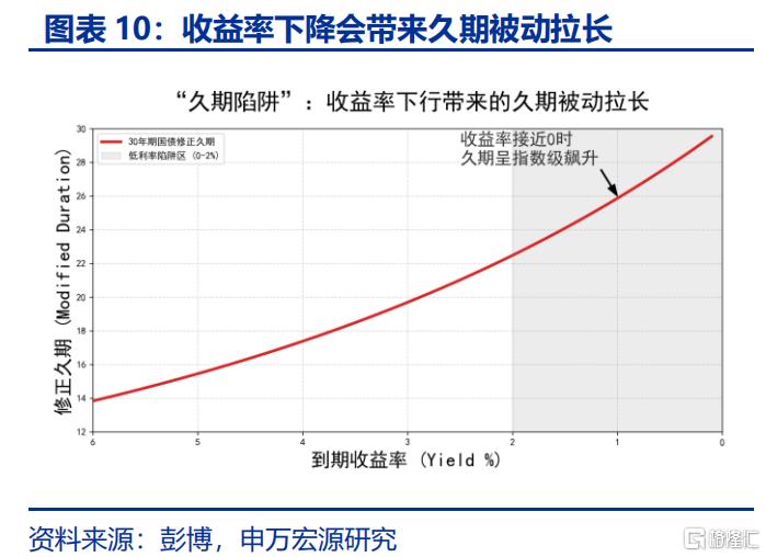 此外,债券的“凸性”特征是放大低利率环境下市场波动的内在机制。随着利率水平不断下行,债券久期会非线性拉长,导致债券价格对利率变动的敏感度显著上升。这意味着在低利率区间,同样的利率反弹幅度(如50bp)所带来的资本利得损失,要远大于高利率区间。这种“不对称”的价格反馈机制,使得低利率环境下的债市在面临反转时,往往承受更大的市场冲击与净值回撤压力。以30年期国债为例,在5%的利率水平下,债市收益率上行50bp、债券价格下跌约7.3%;而在1%的低利率水平下,债市收益率上行50bp、债券价格下跌约12.5%,为前者的1.7倍。
