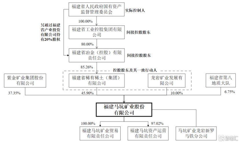 本次发行前,福建省国资委通过福建工控、福建冶控和福建稀土间接控制马矿股份55.9%的表决权,为实际控制人;紫金矿业持有公司37.35%股份,福建省第八地质大队也是公司股东。