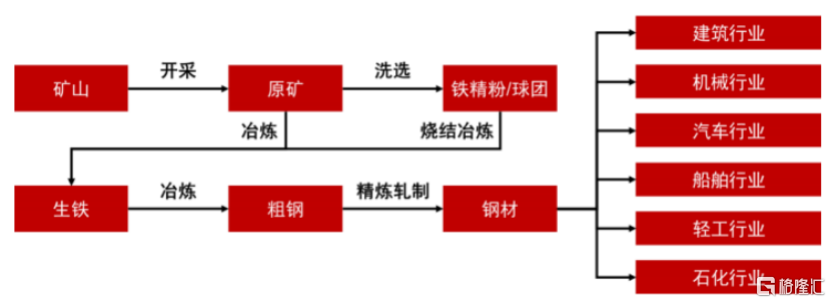 马矿股份所处的铁矿石采选行业,处于钢铁产业上游,铁矿石采选产品铁精粉是生产钢铁的原材料,钢材应用于建筑、机械、汽车、船舶等领域。