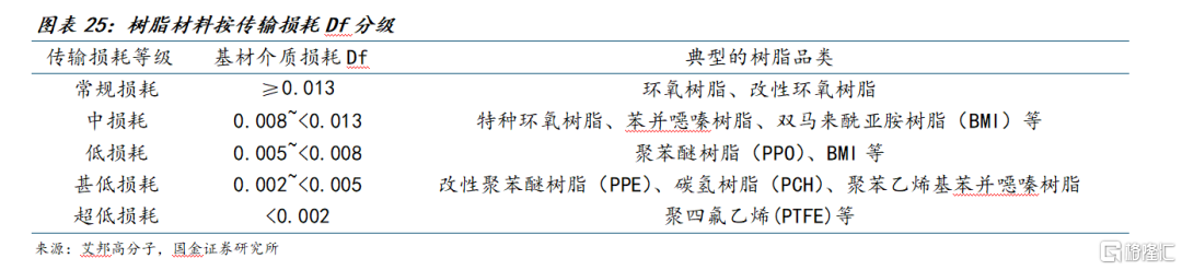 高频高速树脂通常按介质损耗Df分级: