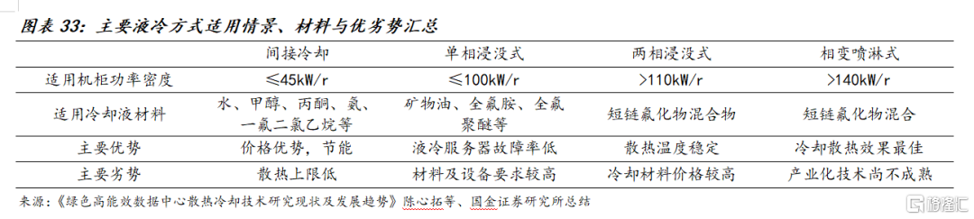 2直接单相液冷是将不影响电子设备部件正常工作的绝缘液体与部件直接接触,液体不发生相变来带走热量的冷却方式,根据冷却液与部件接触的方式又可分为单相浸没式液冷和单相喷淋液冷。冷却液需要满足绝缘性强、粘度低、闪点高或不燃、腐蚀性小、热稳定性高、毒性小等性能要求,以矿物油或全氟胺、全氟聚醚等氟化物为主。