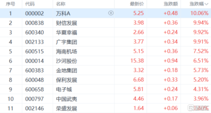 房地产板块拉升,万科A、财信发展等多股涨停,沙河股份、金地集团、保利发展等多股跟涨。