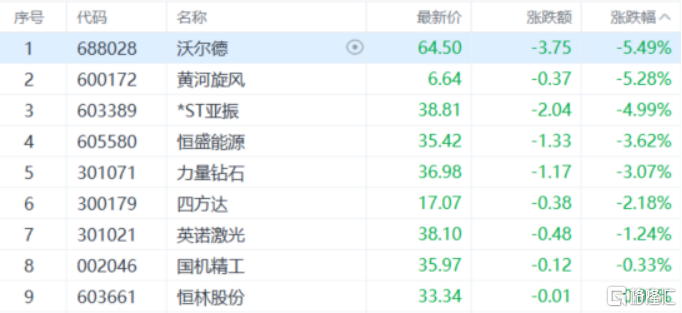 培育钻石板块下挫,沃尔德、黄河旋风跌超5%,恒盛能源、力量钻石、四方达、英诺激光、国机精工、恒林股份等多股跟跌。
