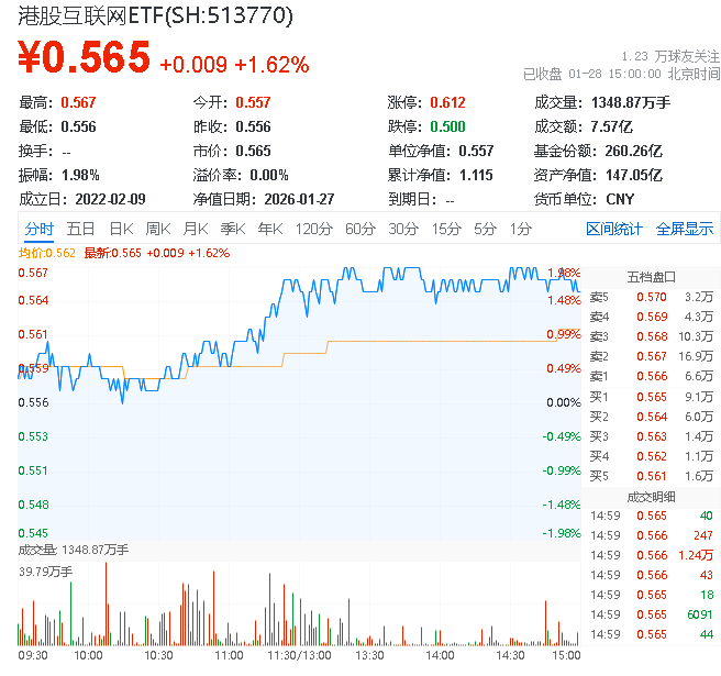 布局工具上,港股互联网ETF(513770)跟踪中证港股通互联网指数(931637),权重股汇聚腾讯控股、美团、小米集团、快手等互联网龙头公司,其中持仓腾讯控股、美团、小米集团、快手、京东健康权重超60%,前十大成份股权重超70%,龙头属性突出。截至6月末,港股互联网ETF(513770)年内日均成交额达2.45亿元,可日内T+0交易,流动性佳!